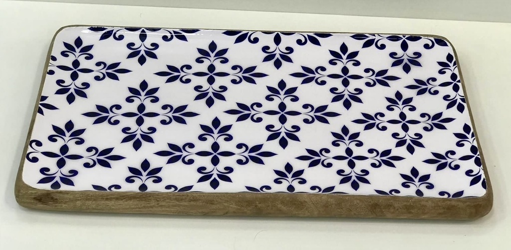 Bandeja Rectangular Esmaltada - Diseño Azul y Blanco (44x25cm)