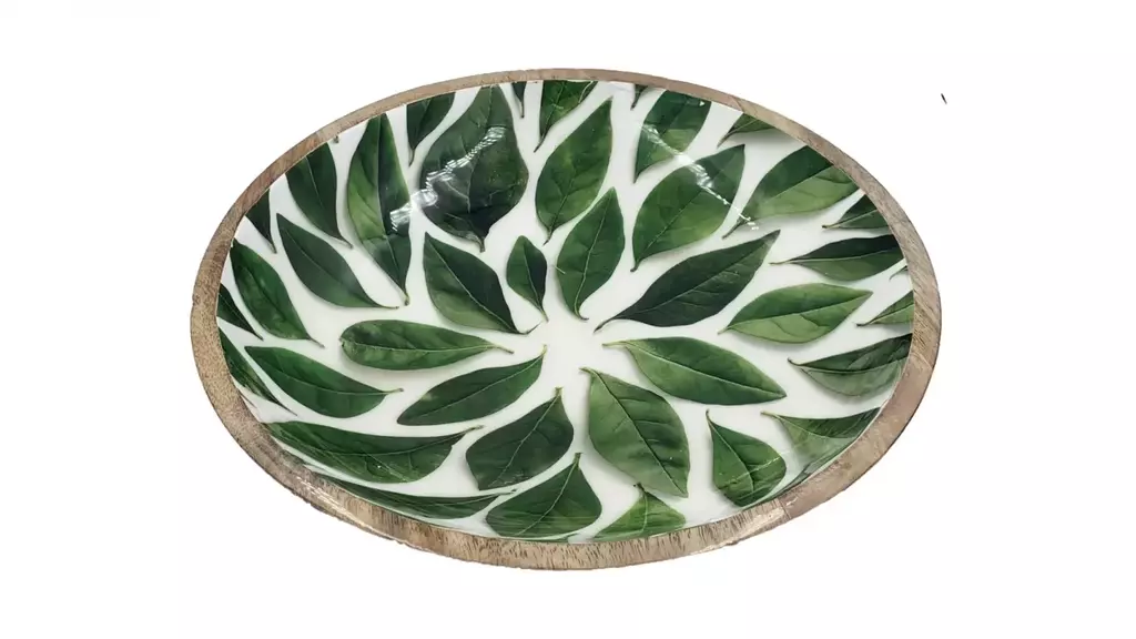 Bandeja Redonda Esmaltada - Hojas Verdes (35cm Diam)
