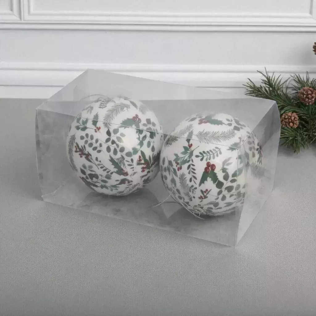 Descubrí la magia de la Navidad con nuestra Caja x 2 bolas Muerdago 12cm, que combina tradición y frescura en cada detalle. Estas esferas en tono blanco están delicadamente decoradas con un patrón de hojas verdes y bayas rojas, evocando el encanto clásico del muérdago festivo.