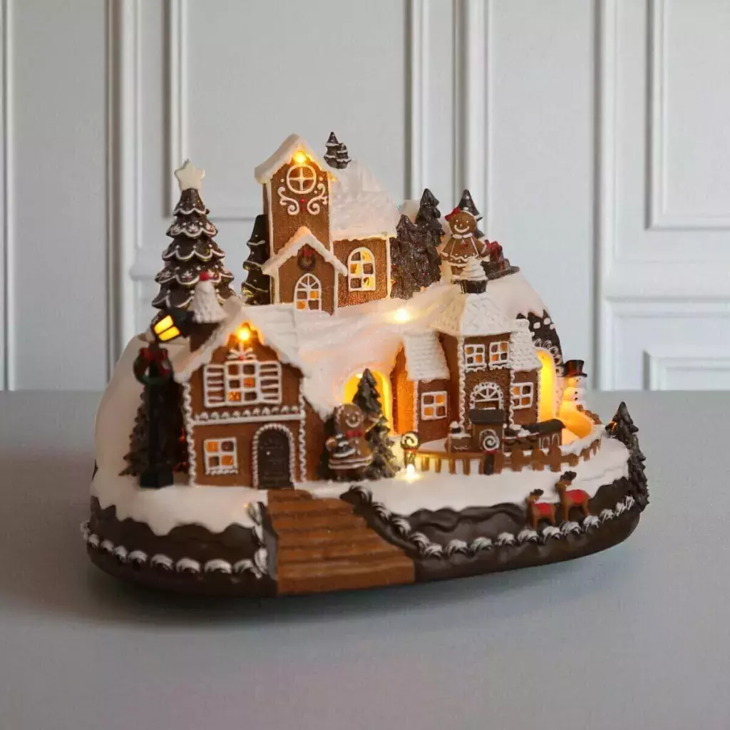 Ideal para decorar mesas, repisas o vitrinas, esta pieza única es el complemento perfecto para una decoración tradicional, llena de luz, color y encanto. Sumá a tu hogar la Ciudad de Jengibre y viví la Navidad con estilo y emoción.