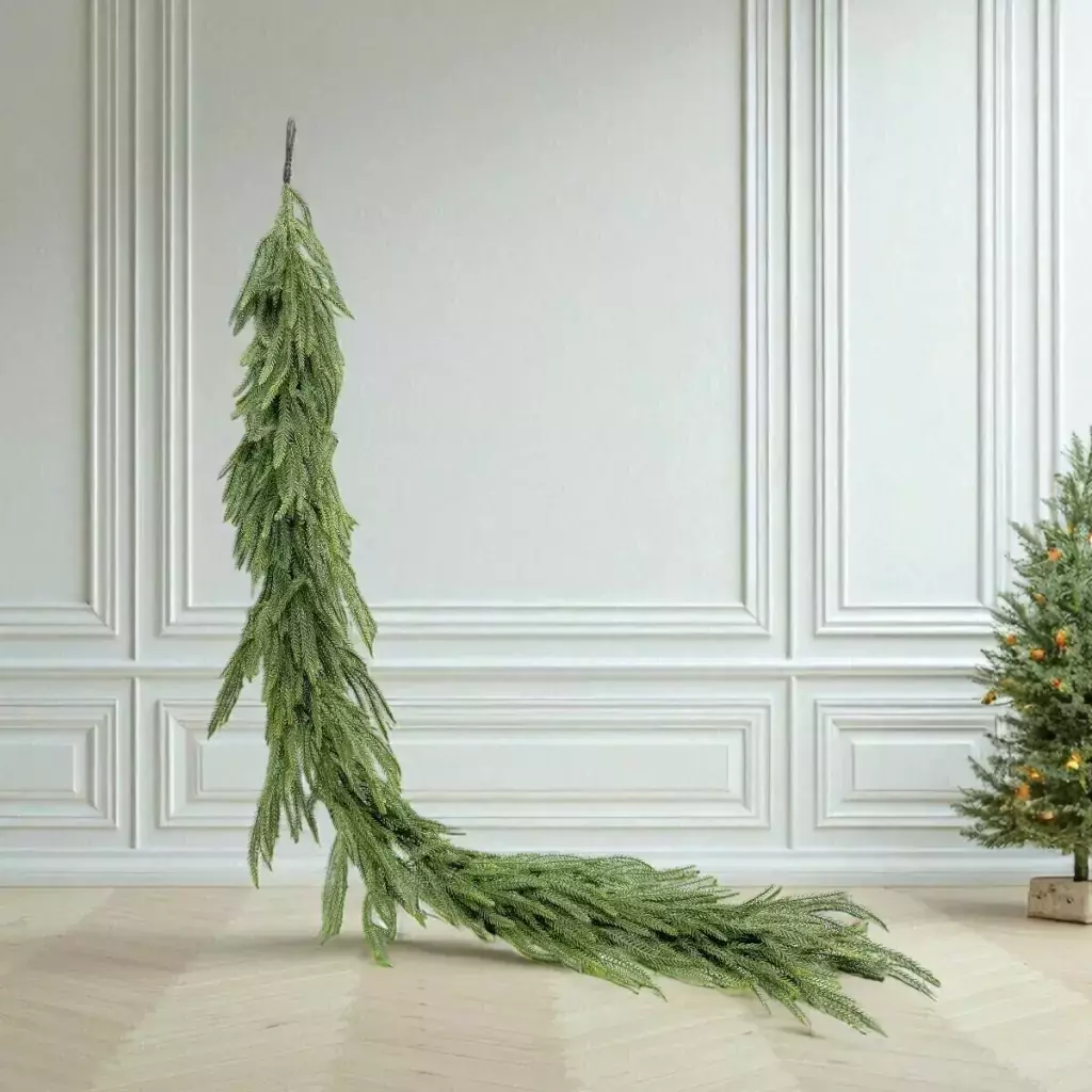 Descubrí el MUERDAGO VERDE 180CM, la guirnalda decorativa que convertirá cualquier espacio en un refugio natural y festivo. Con sus ramas largas y frondosas, que imitan con precisión el follaje de pino, aporta un toque de frescura y elegancia a tu decoración navideña.